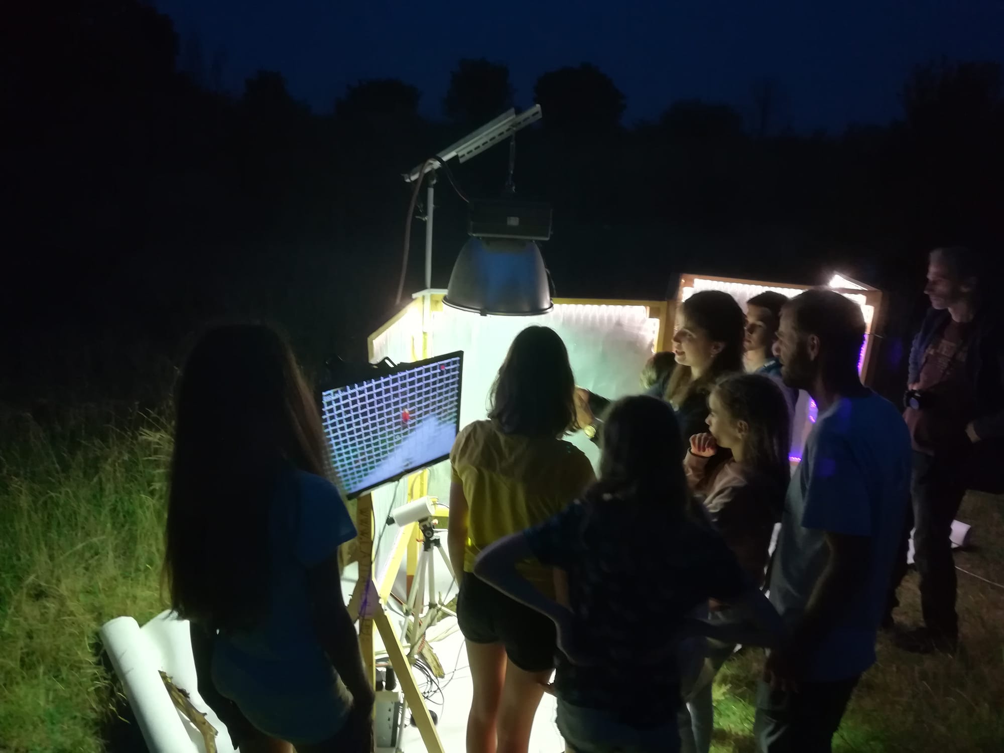 Június 26-án Sándorfalván, a Fehér-tavi Ornitológiai Táborban, azaz a FOT-on tartottam éjszakai rovarászást az MME Csongrád Megyei Helyi Csoport szervezésében tartott madarásztábor fiataljai számára. Nagyon izgatottak voltak a hálóra repülő rovarok iránt, tőlem pedig érdekes történeteket hallhattak a különféle fajok viselkedésével, életével, és többek között azzal kapcsolatban, hogy az egyes fajokat milyen sztereotípiák övezik. A megfigyelt élőlények - a teljesség igénye nélkül - a következők voltak: